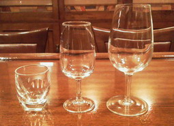 左がショットグラス、中と右がステム(足)付きのテイスティンググラス