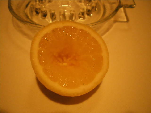 さて、押し込んだレモンの中心はスクイザーが進入した分だけ房が潰れていますが、(写真2)